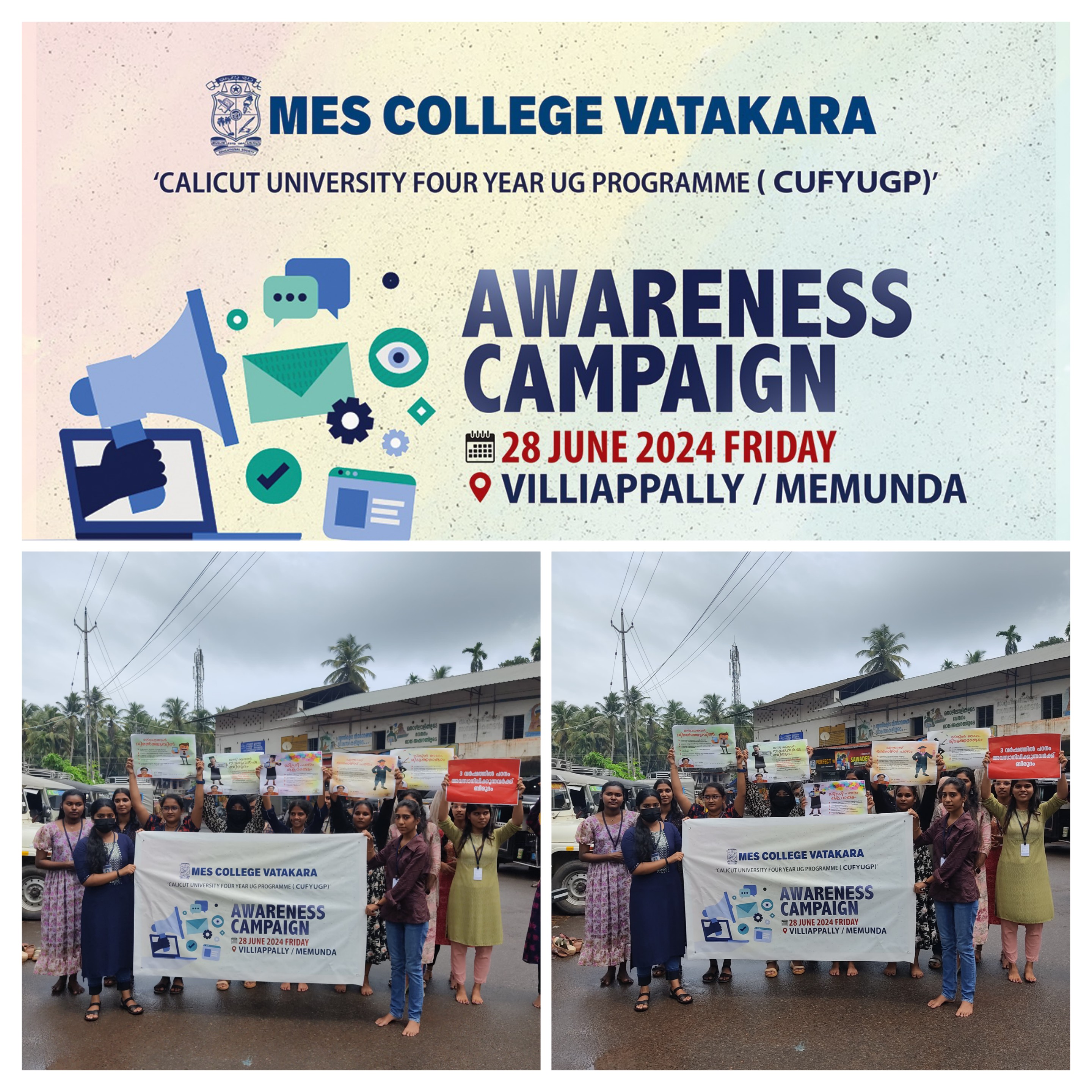 Public awareness Campaign on FYUGP organised at nearby places of MES COLLEGE VADAKARA on 28/6/2024