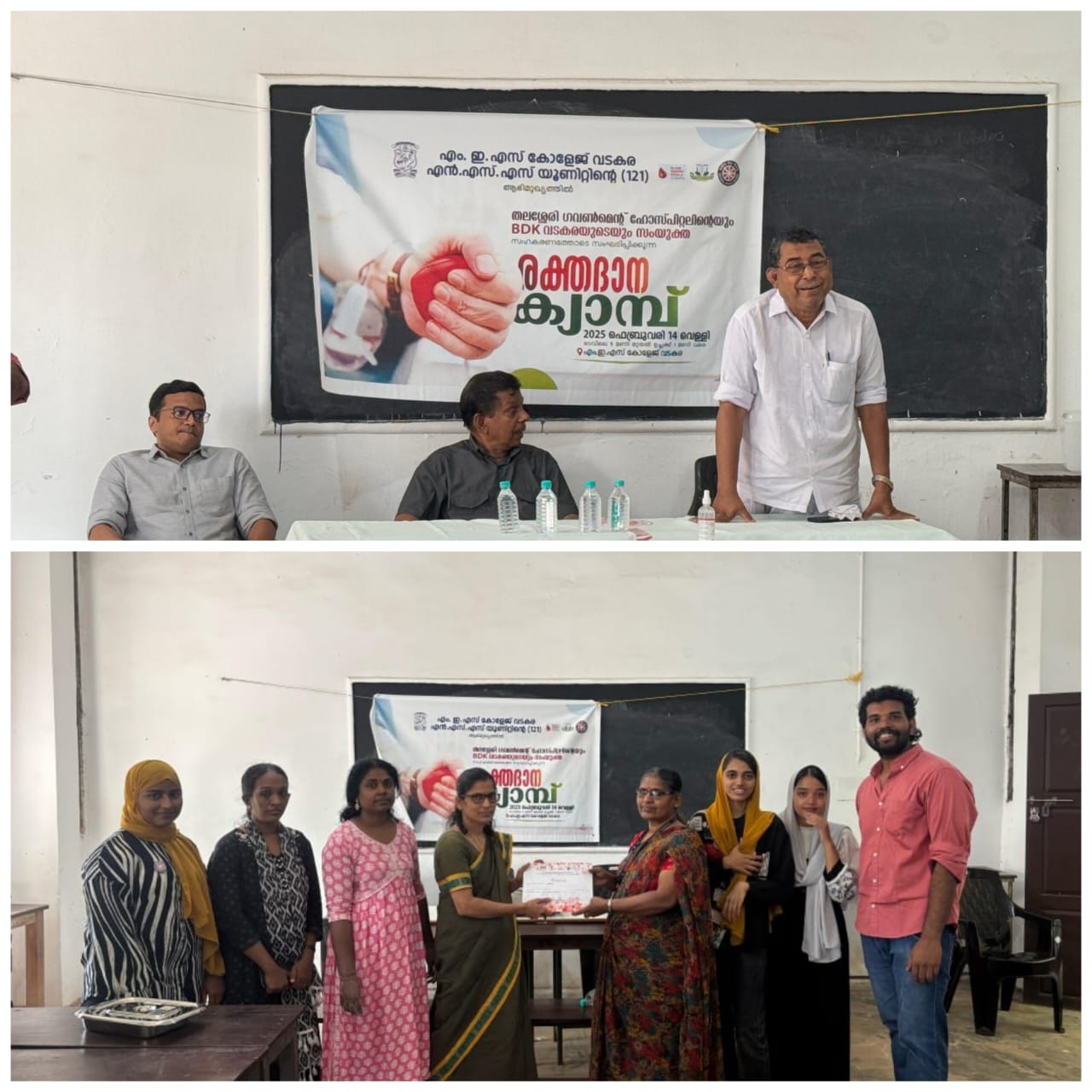 A blood donation camp was conducted at MES College Vadakara under NSS Unit (121)in collaboration with Thalassery Government Hospital and BDK Vadakara. Inauguration of the program was held at the college on February 14. MES College Management Committee Secretary Janab Varayalil Moidu Haji inaugurated the programme.Doctor Janus Dev of Thalassery Government Hospital, Hasan VS (General Secretary of Blood Donors Kerala Vadakara), College Principal Prof EK Ahmed and NSS Program Officer Anoop led the camp.The camp was from 10 am to 12.30 pm. Students and teachers participated in blood donation camp.