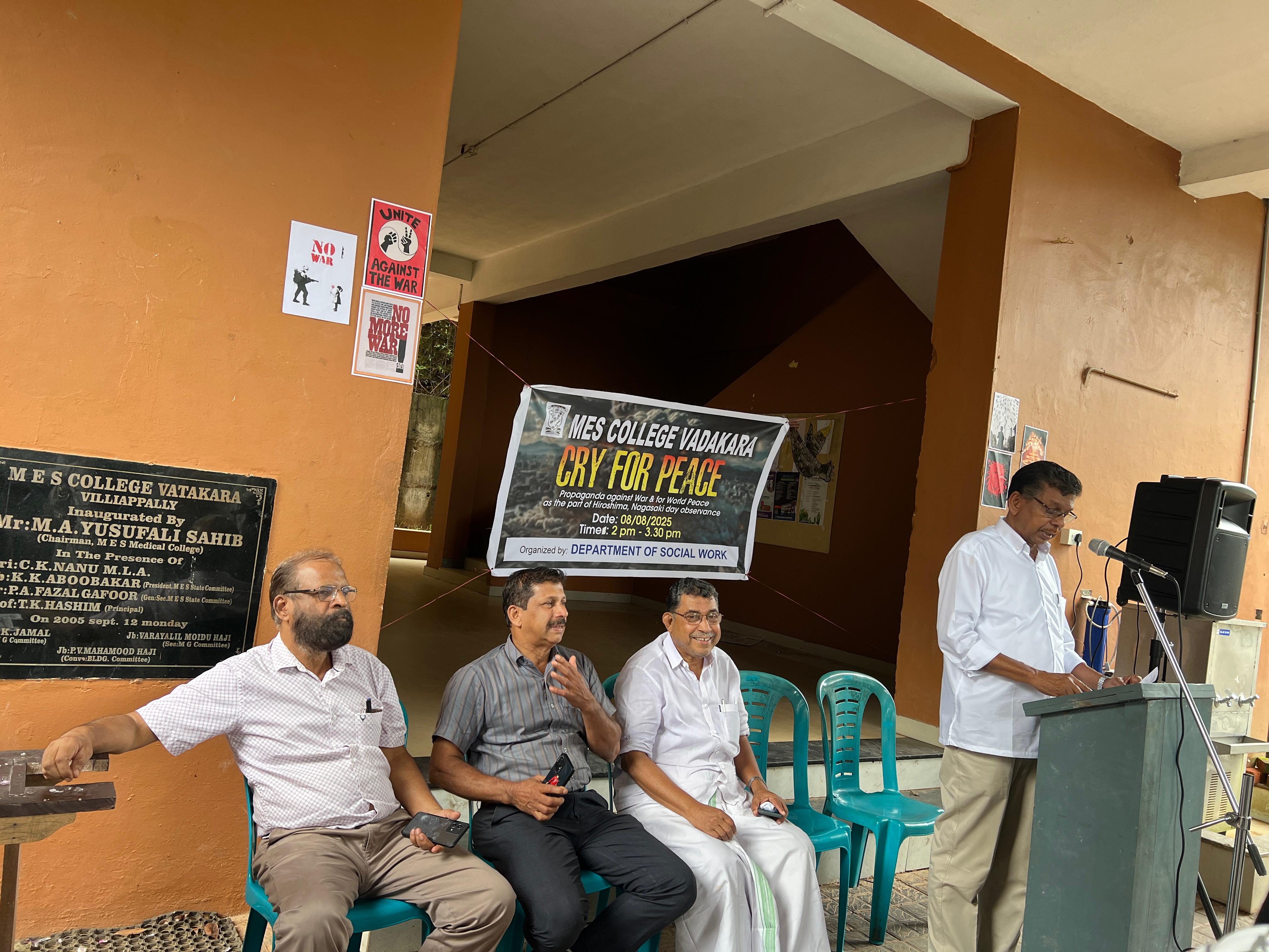 Propoganda against War and for world peace as a part of Hiroshima Nagasaki day observance by Social work department.